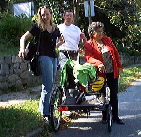 Pictured left to right: Joanna Beeman, Col Dan Petkunas and wife Tem relaxing on the street in front of Mayor Fred's house