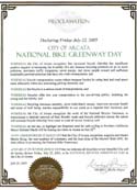 Come on your bike! Help us receive the NBG Day proclamation in your city with other representatives of the bike community. Time 12 noon (unless otherwise noted). Location: City Hall. Questions
