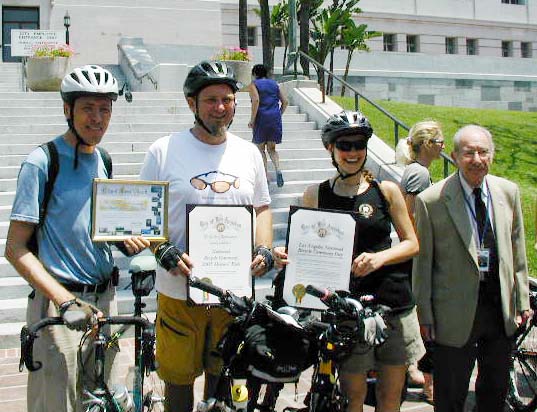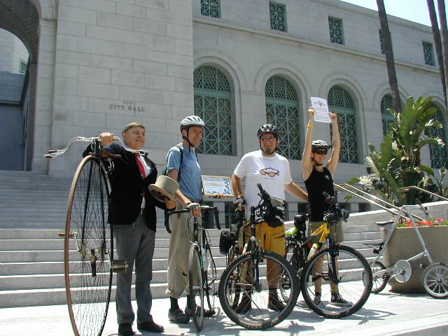Erik Knutzen, Stephen Box, Enci and Alex Baum (LADOT and Chairman of the Mayor's Bicycle Advisory Committee)