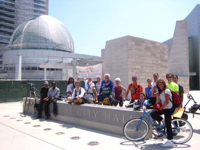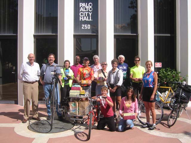 Over the Hill cyclists (from Santa Cruz) w/SVBC board members, city staff and Palo Alto bound cyclists