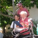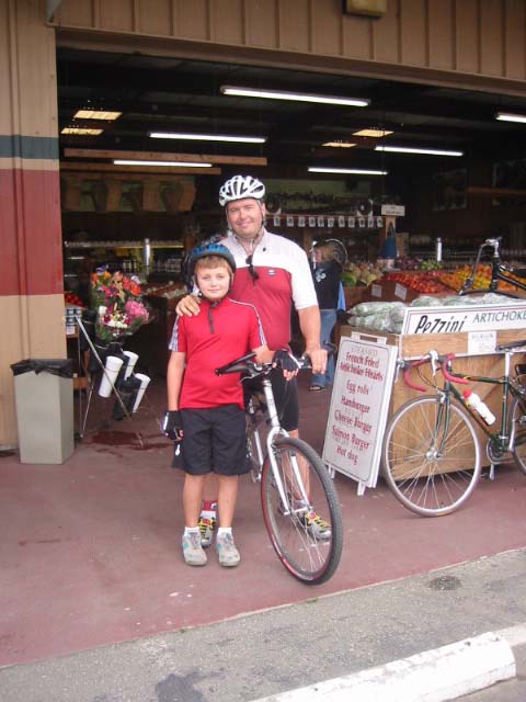 Christopher and his son John at produce stand with their tandem