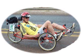 he also can run the seat at the same low levels that he has with his widely respected Low Racers. And to help with the fatigue that breaks any fast rider down, he added a Cane Creek shock over the rear wheel. Weight Penalty with Mounts: 1.5 lbs. All this on a *titanium* recumbent that weighs in at under 23 lbs and not only delivers on acceleration but also on comfort. In fact, if you go to his company website, you will see that they are calling the bike, the X-Bone GTR for Grand Touring Recumbent..