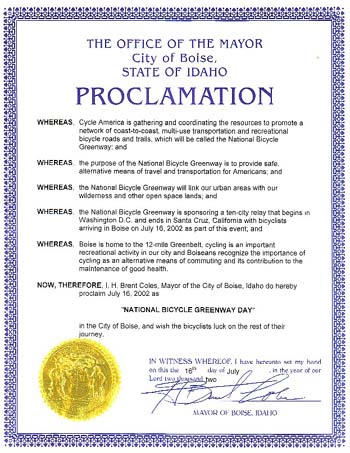 (from Salt Lake City, UT ) National Bicycle Greenway Day in Boise July 16,2002 |