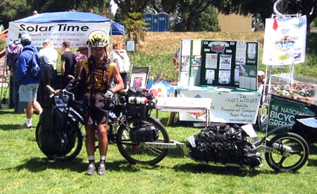 * 1100 miles, 49 days, 48 rolls of film. Slept at nite in 90 degree heat vs. 110 avg day. Constant Wind. No roads. Flat. Used GPS to navigate and also find water. Planned it for several years including location of springs, some of which he hit that were dry. Nothing cold to drink for whole trip. Saw no one for 43 days, no shower either. Rode 8 to 36 miles in a day. One of 4 to do it solo. Packed 68 lbs water, 48 lbs dried fruit. Shot snakes, birds and lizards for food. Planned trip for two years